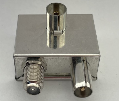 Samozřejmě nelze tyto dva kabely spojit "nějak", je třeba použít součástku, která se nazývá rozbočovač DAB+ a DVB-T2. Tato součástka zajistí potřebné oddělení signálů televizního vysílání a digitálního rozhlasu na dva oddělené výstupy bez ztrát a vzájemného ovlivňování.
