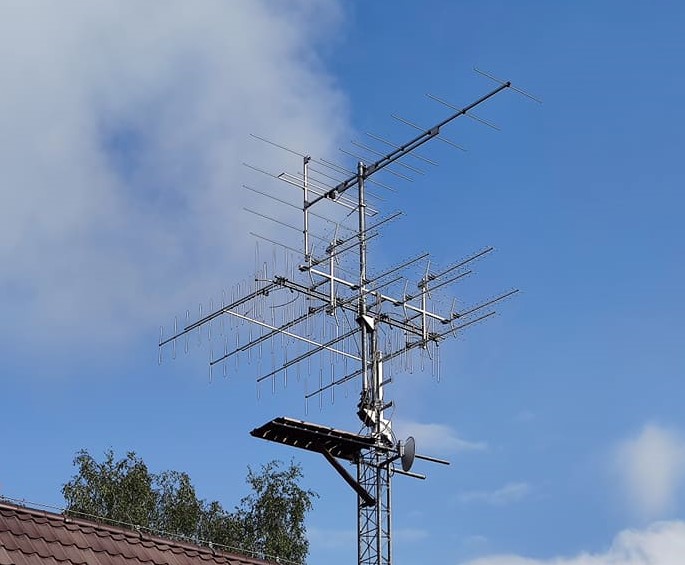 Ukázka v praxi vyzkoušené výborné antény pro celé pásmo UHF, která se však již nevyrábí. Není to žádný drobeček, celková délka je 282 cm a s tím je třeba při umístění počítat.