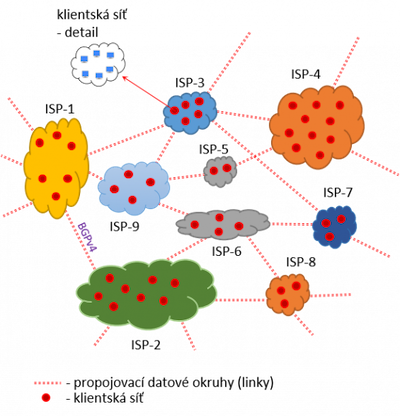 Mráčky označené ISP znázorňují poskytovatele internetu (Internet Sevice Provider). Každému je tak jasné, že pokud se nachází v mráčku "klientská lokální síť" a zdroj videa například v mráčku ISP-2, musí datové pakety přeskákat přes několik dalších podobných mráčků. Je to velmi zjenodušující, ale ve skutečnosti to tak opravdu je.