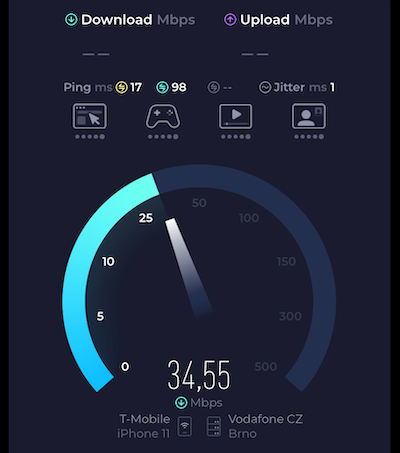 Rychlost kolísala mezi nulou až 300 Mb/s, mnohdy se objevila informace o tom, že zařízení (mobilní telefon) není k internetu připojen vůbec.